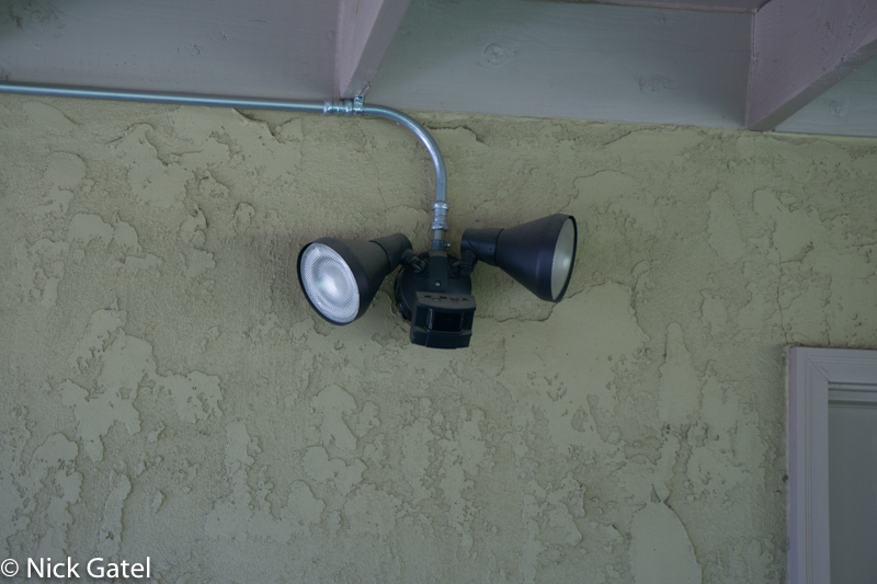 Unfortunately in our society we have thieves. I installed a couple large LED floodlights in a motion detection fixture.