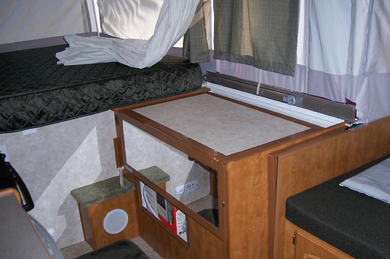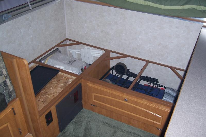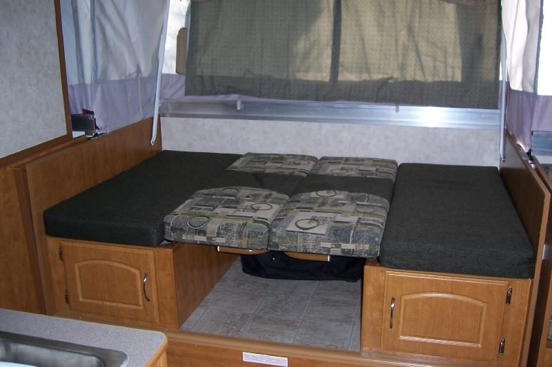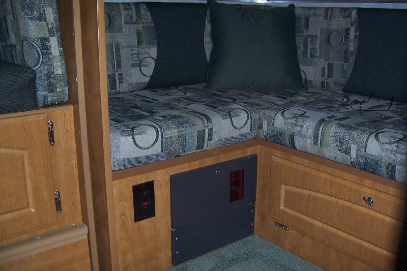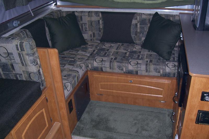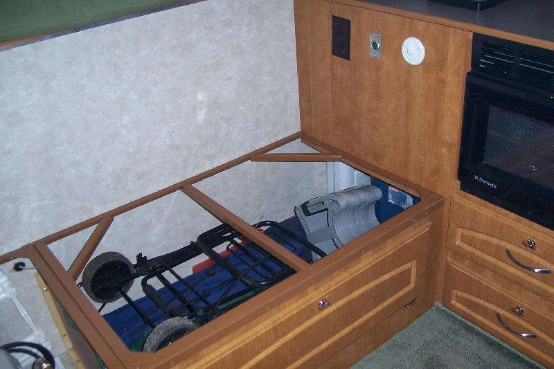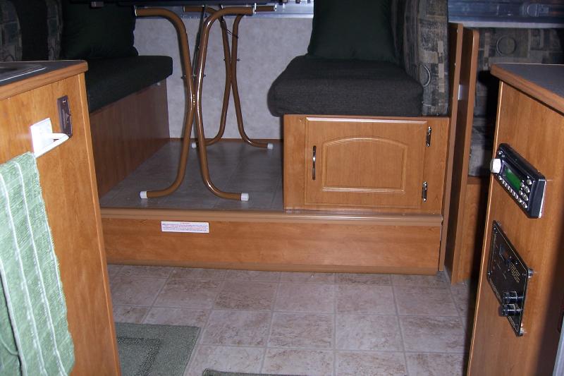 Area under dinette has storage room for travel