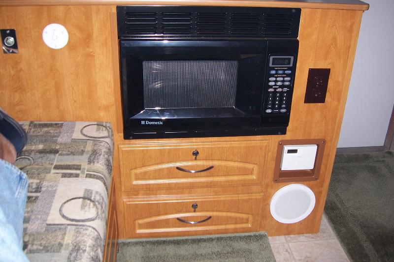 Drawers & microwave in front curb side cabinet