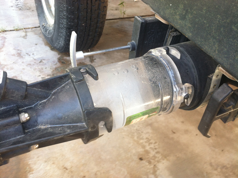 Our camper came with a 9 gallon black water tank (toilet sewage). Where we camp there is no place to dispose of the black water. So I bought a Poop Canon, which made it easy to off load the sewage at home and even flush out the tank.