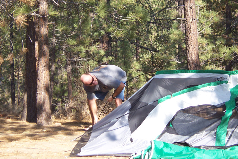 This was a trip with our friends Chris and Melissa. We did a lot of hiking. For some reason I only took pictures or our campground entertainment, which was Chris setting up their tent.