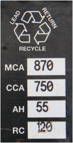 CA (Cranking Amps) or MCA (Marine Cold Cranking Amps): is cranking amps measured at 32 degrees F. This usually indicates the battery is a hybrid used in marine or RV applications.