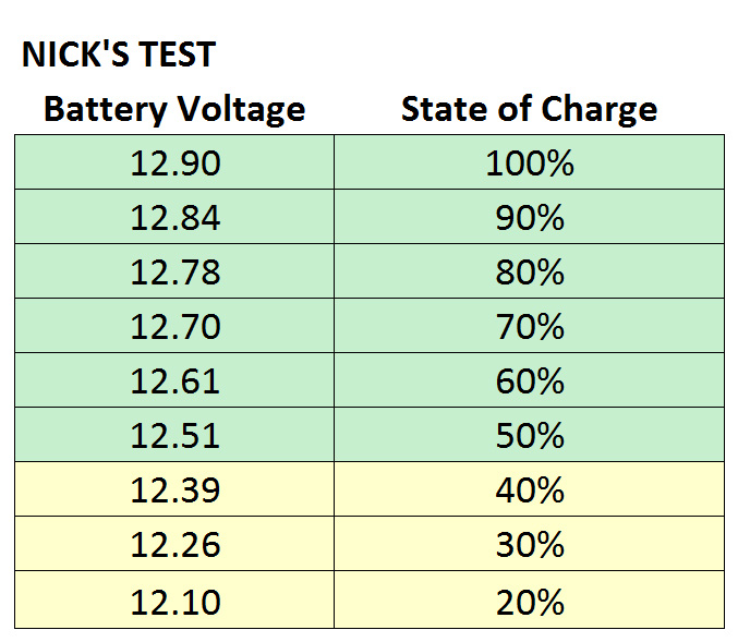 I did notice the battery bank usually read 12.8 or 12.9 volts when fully charged. I just attributed it to an excess surface charge on the battery. To accurately check the state of charge, it is recommended to let the battery sit disconnect for 6 to 24 hours. Something I really wasn’t interested in doing. However, applying a load to a fully charged battery should remove the surface charge.
