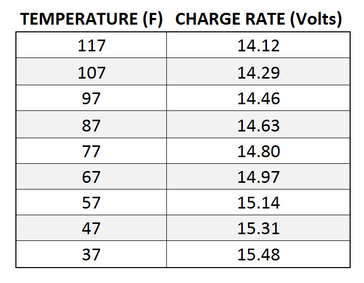 All battery manufacturers recommend that the charging voltage be increased or decreased based on the ambient temperature.