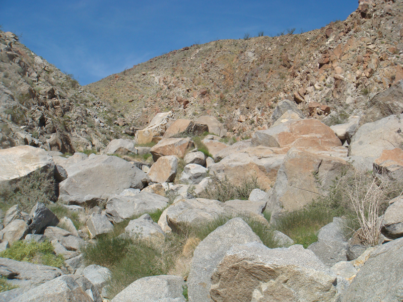 This section provided the only challenges of the trip. First was navigating the boulder fields at the beginning of the canyon, the second was finding a relatively easy route to the playa above the canyon. Both were of little concern.