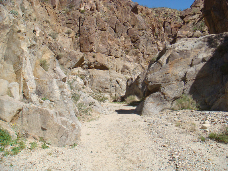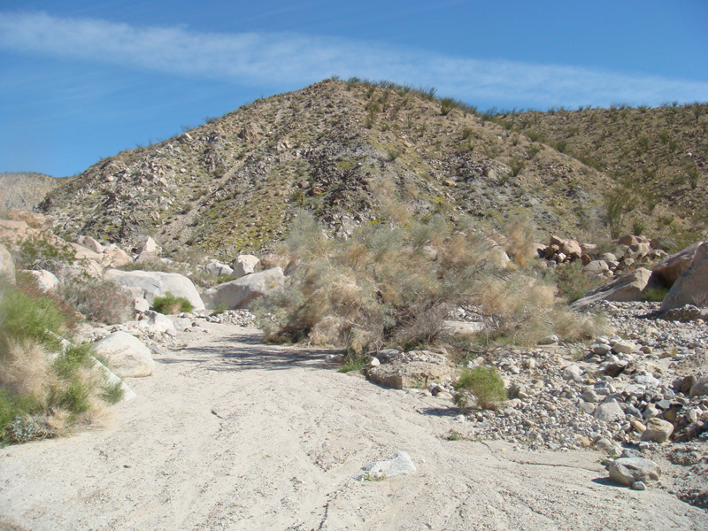 Last day of trip. I headed down a side canyon into Box Canyon, which drains into Coyote Creek. From there, it was a pleasant walk along the creek, up to Ocotillo Flats and then to my truck. Finished the hike at noon, and then drove to the Salton Sea to get a well-deserved beer!