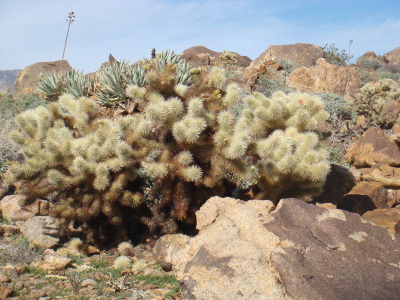 Above: View of Clark Valley from Alcoholic Pass (top) and a cactus garden in Alcoholic Pass (bottom).