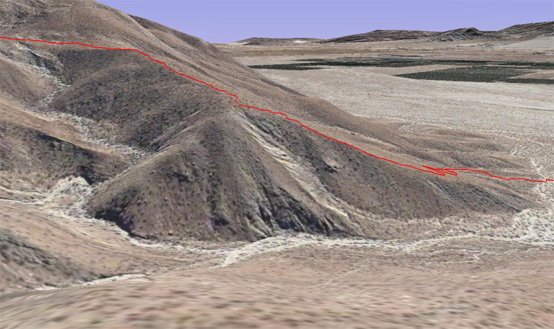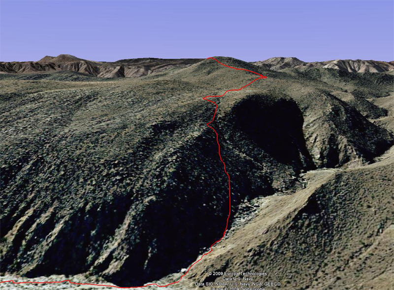 Google Earth picture of the hike down into Canyon. You can see where I zig-zagged on that flat spot. I was following an old Indian path, and the map does not show the obstacles, which needed to be circled.
