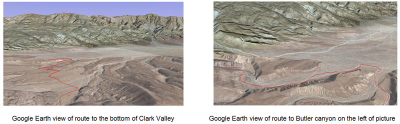 Google Earth view of route to the bottom of Clark Valley Google Earth view of route to Butler canyon on the left of picture.