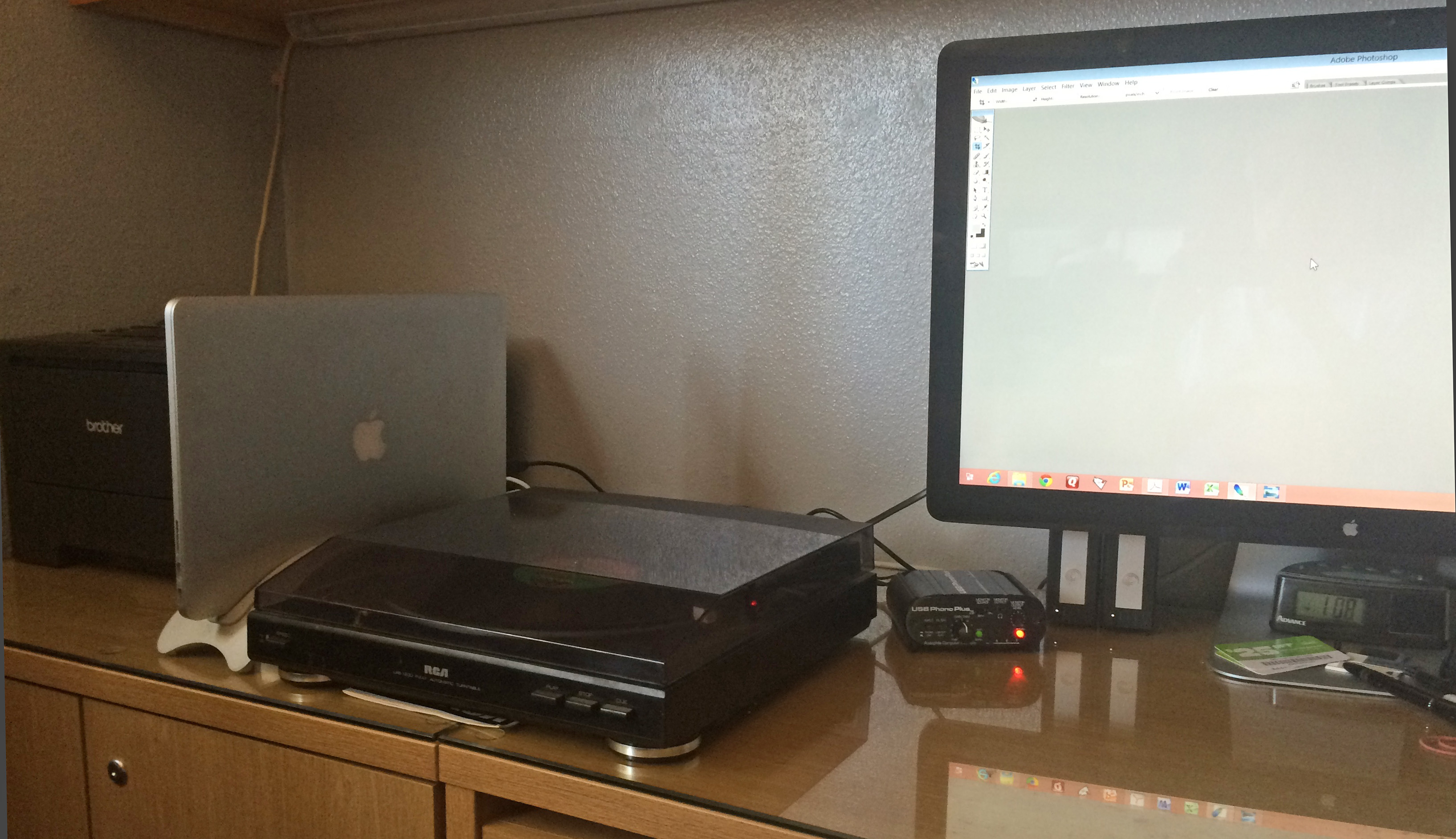So, I bought an inexpensive USB turntable that was portable and could be used in my office. Recording quality was poor and the tone arm pressure could not be adjusted.