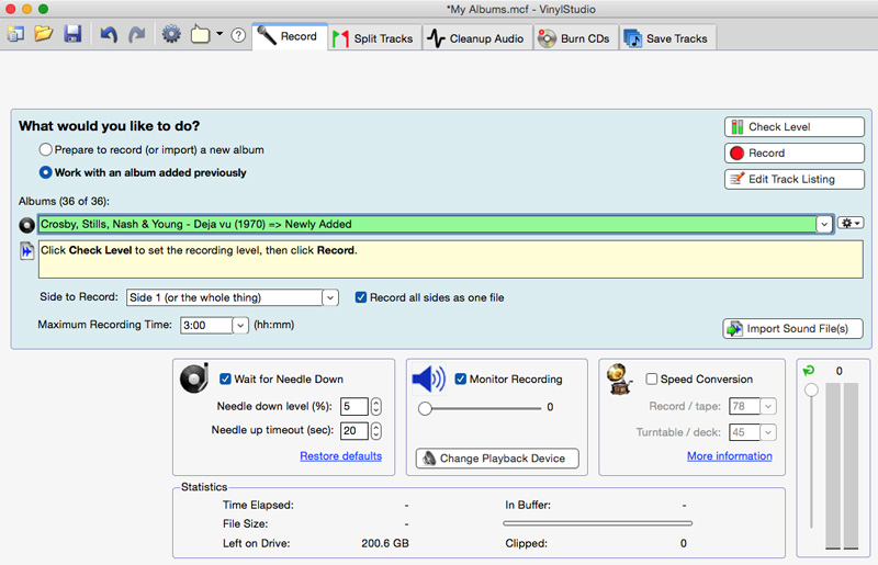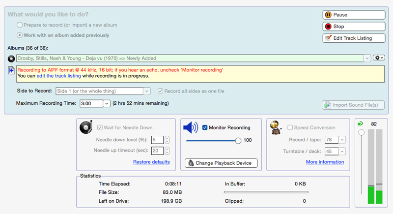 When one side of the album is done, the software pauses and waits until you flip over the record and then starts recording again once the Record button is clicked.