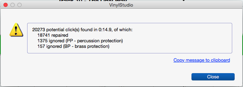 After the tracks are listed, the software can search for clicks and scratches and deletes them.