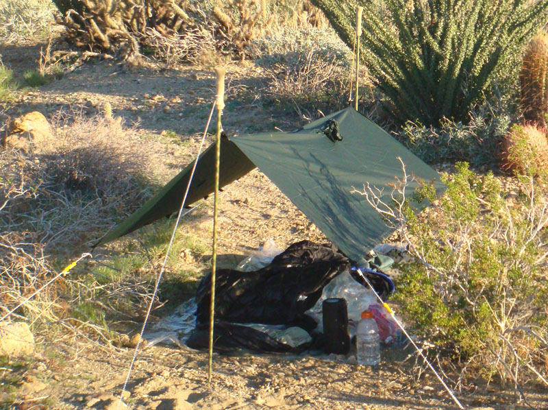 Poncho/tarps are not large shelters. Site selection and set-up become essential skills. Also, in wind-driven rain, your sleeping bag will get wet. The only solution for this is to use a water resistant or “waterproof breathable” bivy. Essentially it is a sack you put your sleeping bag or quilt inside to keep the spray off your sleep system. Even though the backpacker is not exerting himself, as when hiking, bivys are prone to condensation from water vapor generated during sleep. Same problem as rain gear. But with experience the skilled backpacker can minimize this problem to some degree.