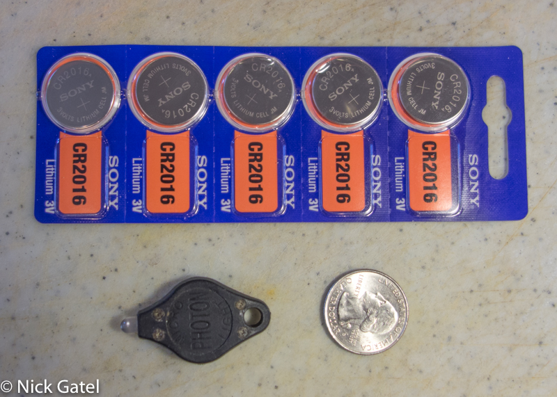 Before you replace the battery you need to know what battery to buy, and this is weird: the Micro-Light II uses two different batteries depending on what color LED light you have. The most common is the white light and it requires two CR016 batteries.
