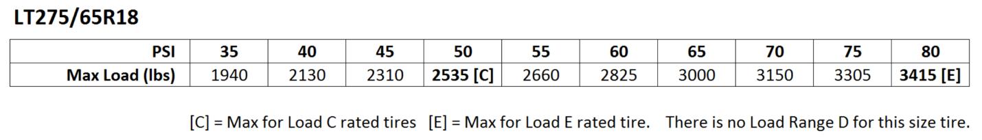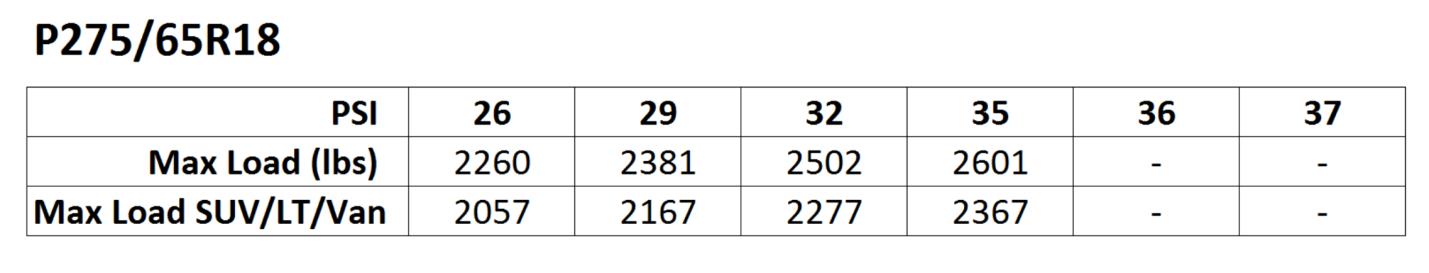 I’ll let you decide. But here is the Air Pressure & Load Chart for a LT275/65R18