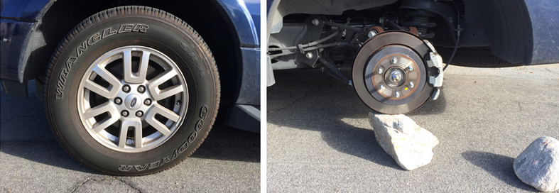 I had the SUV towed to our local Ford dealer, about 9 miles away, for a new tire and wheel. The service advisor showed me another Expedition with the same exact wheels on the lot, only this one was missing three wheels.