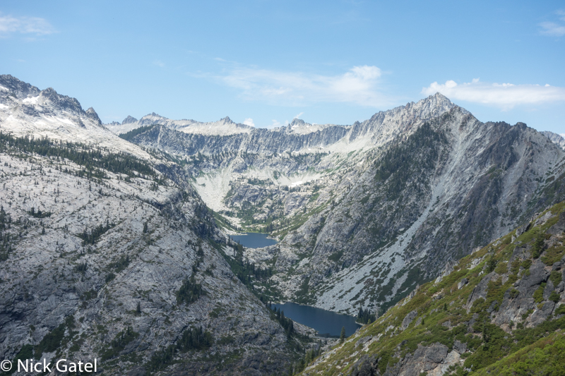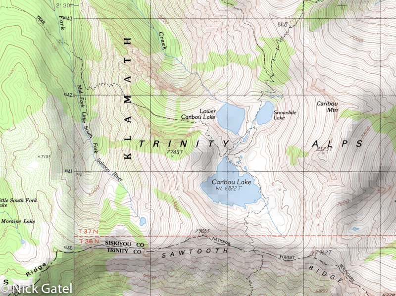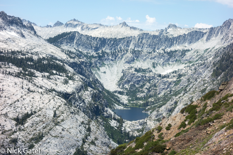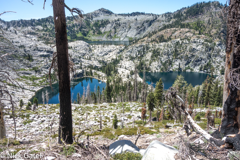 Lower Caribou Lake is in the middle of the above picture. Doug and I would hike to the saddle in the ridgeline, which is the Sawtooth Ridge – an 800 foot elevation gain from the group campsite.