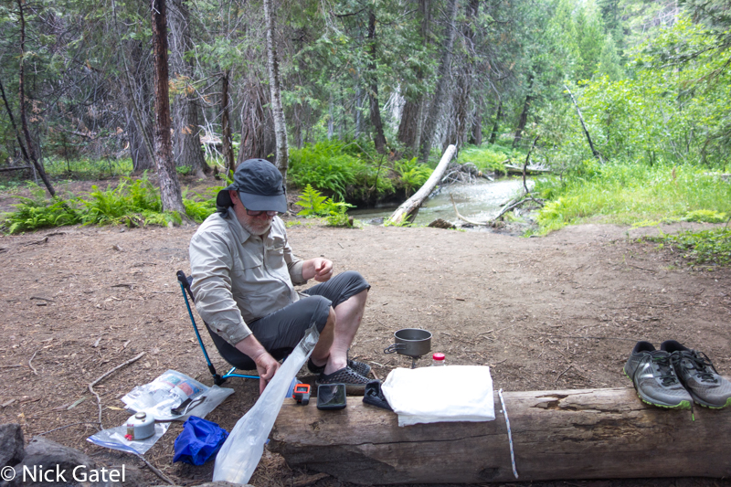 The next 4+ miles was easy walking through conifer forests and a gradual 800 foot elevation loss. We made camp at Morris Meadow Camp. Total mileage about 7.5 miles for the day. We discussed going further and even walked beyond our campsite about ½ mile to check out the Deer Creek Trail junction. But we decided the elevation gains the next day would be better if we got a good night’s sleep first.