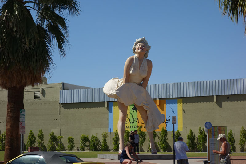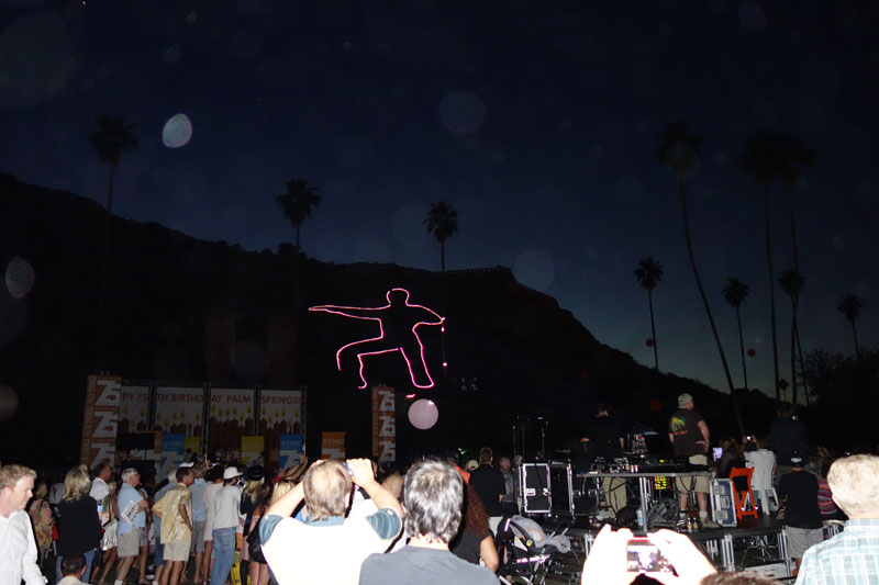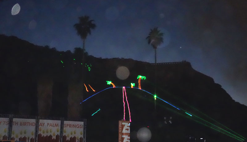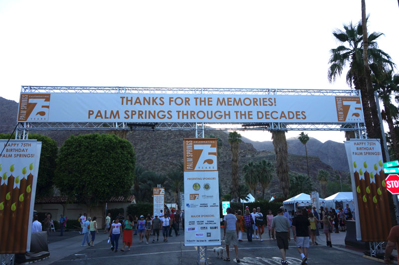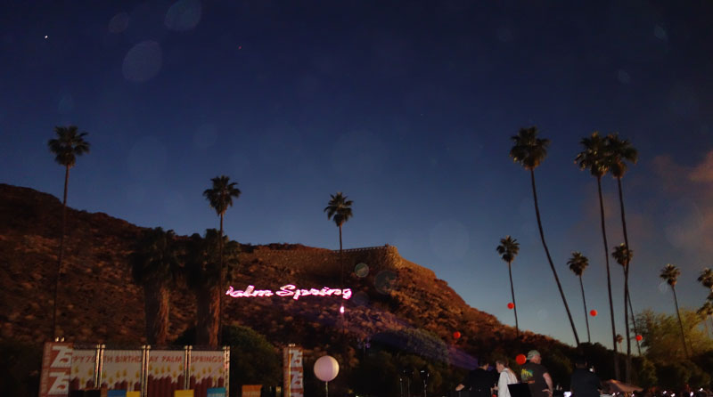 I think people should hike or walk every day. Few do. One does not need a wilderness trail to enjoy a good walk. Hiking around town can be fun. Joyce and I like to walk to downtown Palm Springs and back home, which is an 8 mile round trip. Of course, a walk downtown usually means eating once we get there. Today was Palm Springs’ 75th Anniversary of incorporation, the there was a big birthday party going on. Since no taxpayer monies were spent on the gala affair, we decided to walk downtown and check things out. The picture above is our view as we leave the house. We would end up doing right around 12 miles today.
