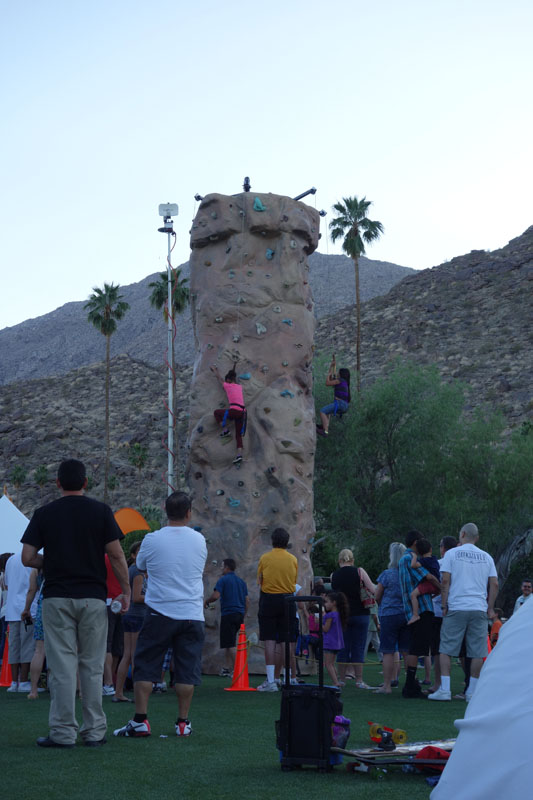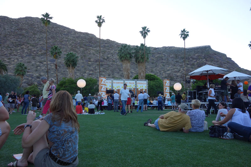 We sit a Starbucks and leisurely drink our ice teas, while watching all the tourists. Refreshed, we head over to the O’Donnell Golf Course, where the 75th Anniversary bash is being held. The golf course sits right at the base of the San Jacinto Mountains. Although I have never been on the course, I have seen it many, many times. For most of the first mile of the Desert Skyline Trail, O’Donnell is visible. When we get there, we walk around the exhibit area and listen to a little music. Live music plays all day, from 3 pm until 8 pm.