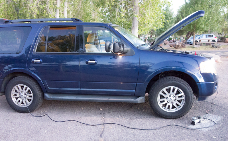 Towards the end of our trip Joyce had to go to work and the camper was left at the campground, driving her home and then returning back to the campground (500 miles round trip). On the way back I stopped at a Ford dealer to get my oil changed, specifying I wanted the SUV tires set at 80 PSI.