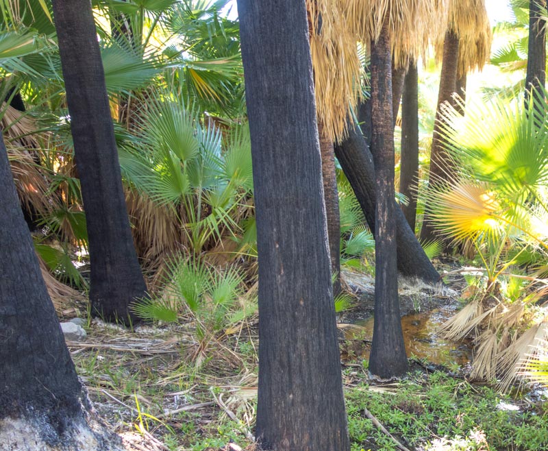 Above: Palms can withstand fire, which removes the dead frond skirts from the bottom.