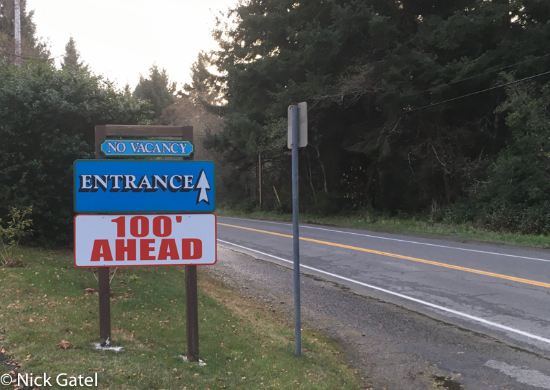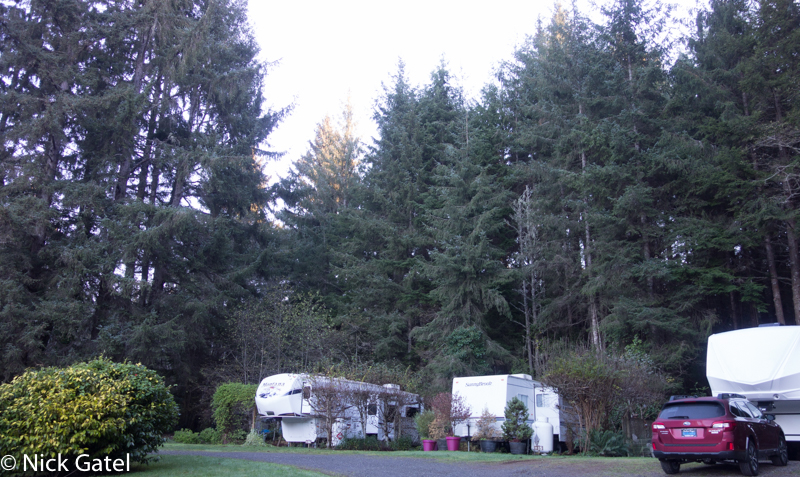 There aren’t many public campgrounds in this part of the state, but given the weather forecast of lots of rain and clouds, plus lows in the lower 30’s we opted the private campground route because our solar system and battery bank probably could not supply the needed power to keep us warm and comfy for an extended period of time.